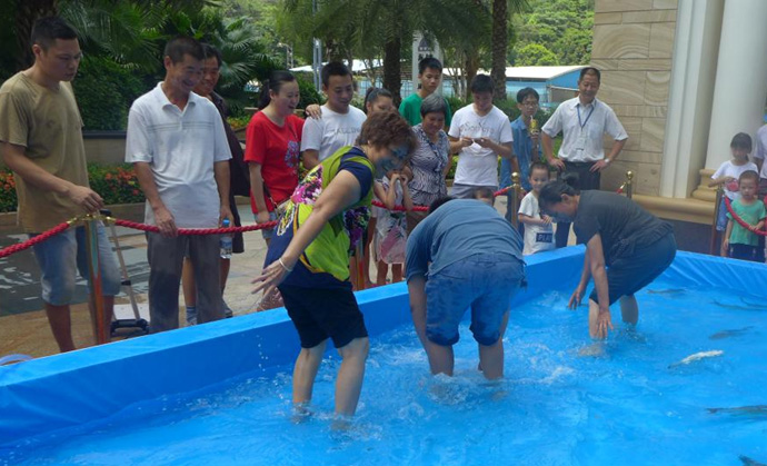 在本次活動中最激動人心的就要數(shù)捕魚達人游戲了,在幾十平方米大的水池,放的都是兩斤以上的大魚,人們紛紛排隊進水池捕魚,只要在限定時間內(nèi)抓到就是自己的啦!!